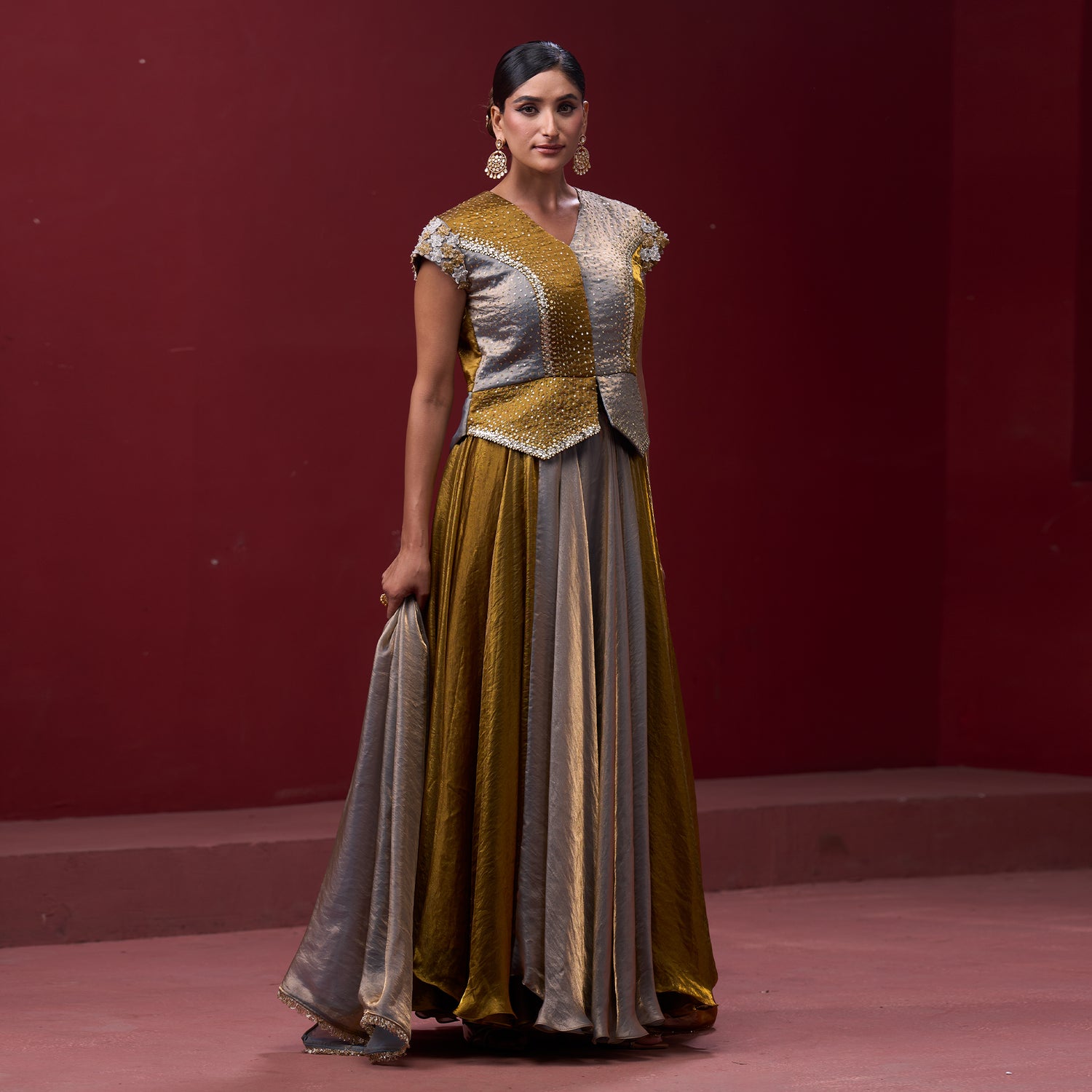 Drape Golden & Silver Skirt with Embellished Top and Dupatta