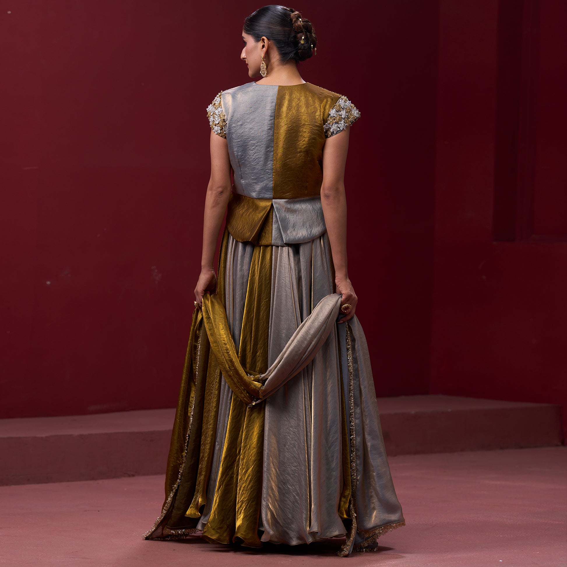 Drape Golden & Silver Skirt with Embellished Top and Dupatta